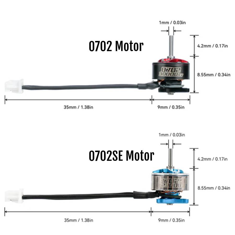 - 0702SE motor: Uses brass bushings for durability and low weight, at just 1.42g (or 1.35g without connector). This cost-effective option offers excellent efficiency and reliability for lightweight builds.
