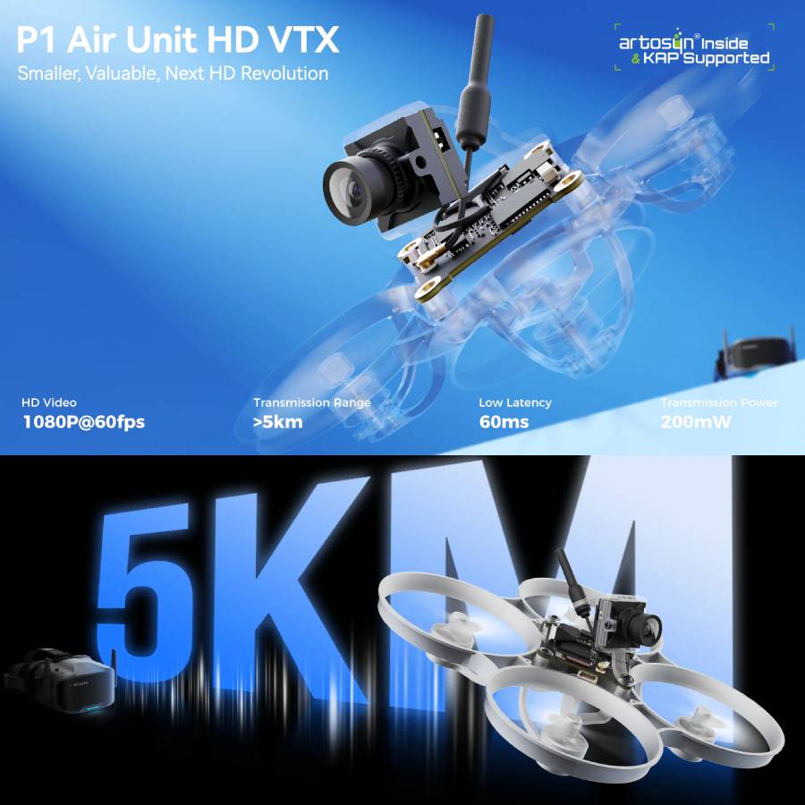 Using the ArtLynk protocol, the P1 Air Unit is designed to maintain stable digital transmission with approximately 60ms latency and a potential range of over 5km in optimal conditions, helping pilots maintain a reliable connection during longer flights or in challenging environments.