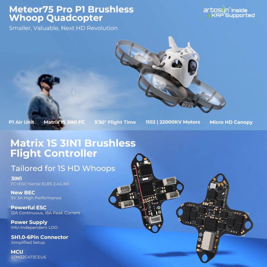 - Frame: Meteor75 Pro Brushless Whoop Frame