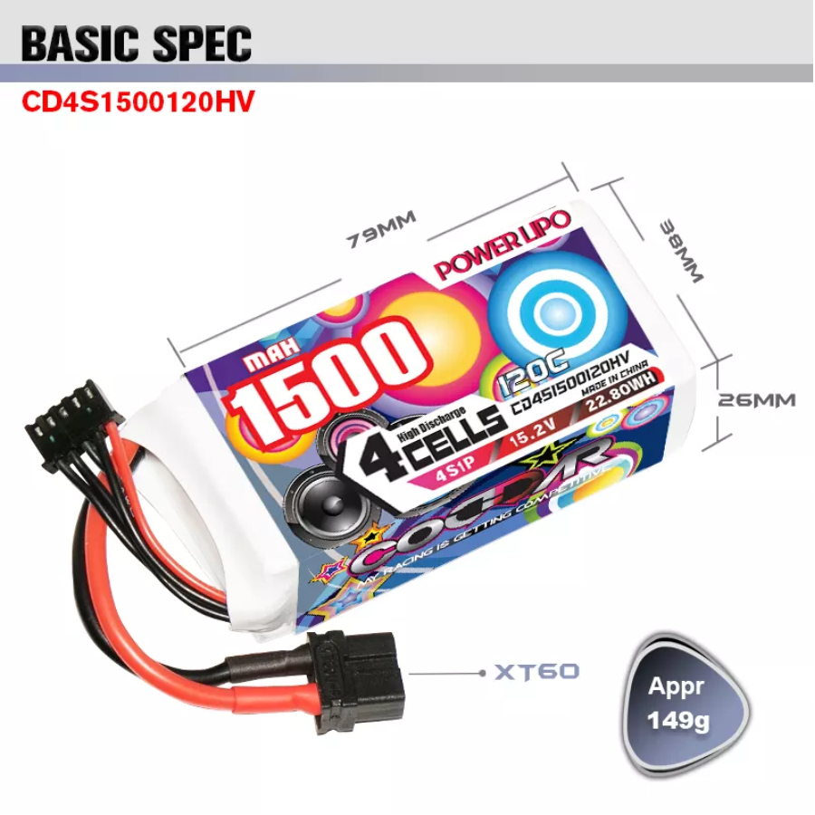 - Model: CODDAR 1500mAh 4S 120C LiHV Battery