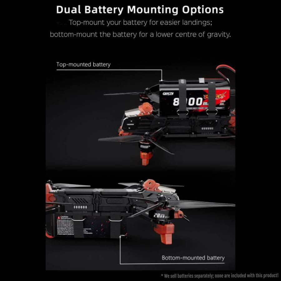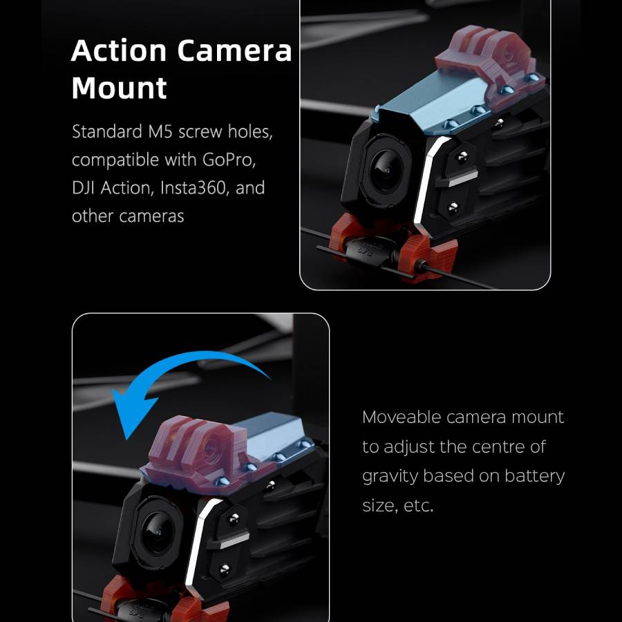 - Flexible mounting options with swap-out action-camera mount and dual battery mounting configurations make setup versatile for video rigs or long-range flight packs.