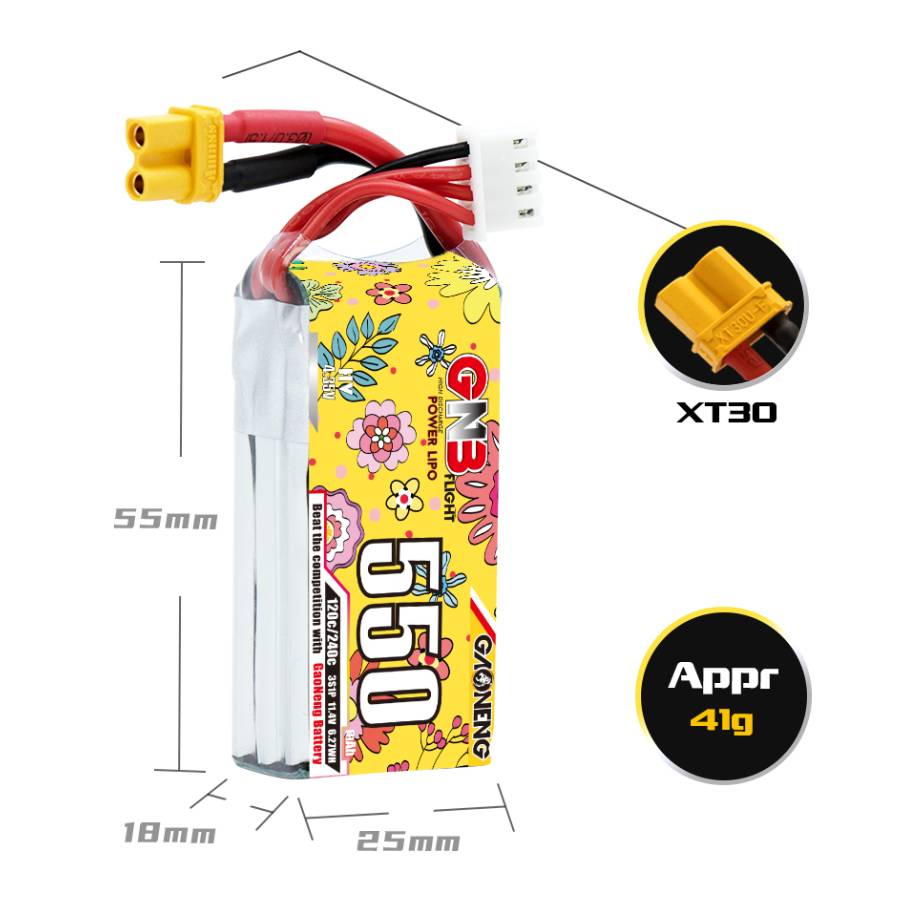 GNB 550mAh 3S 120C LiHV Battery with XT30 connector.