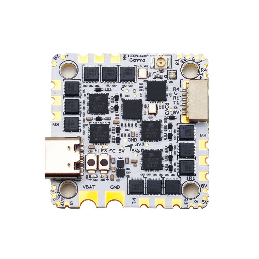 Purpose-built for digital FPV systems, the Gamma includes a standard digital VTX plug and a protected 8V/3A high-power BEC, allowing easy connection of modern digital video transmitters such as HDZero, DJI, Walksnail and OpenIPC. A secondary 5V/3A BEC is also provided for LEDs and additional peripherals.