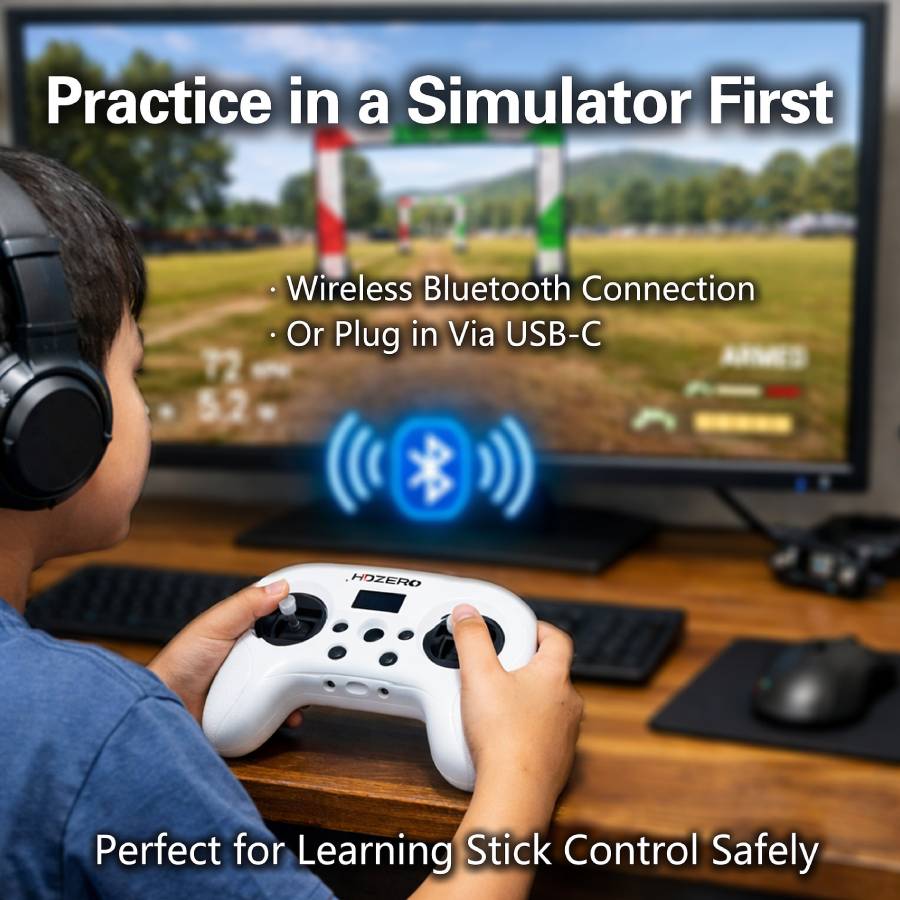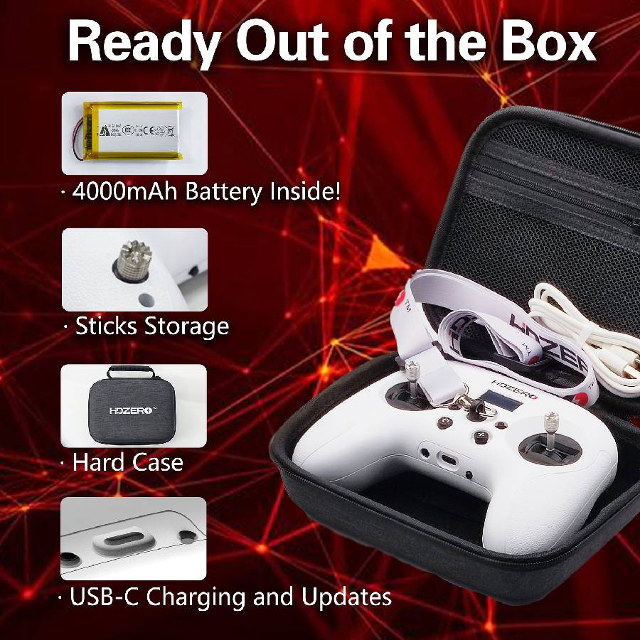 The HDZero Radio is a compact and beginner-friendly ExpressLRS radio transmitter designed to make high-performance RC control accessible without the complexity normally associated with ELRS systems. It combines up to 250 mW of adjustable transmit power, a dedicated OLED interface for on-radio configuration, and built-in support for VTX control and telemetry. Aimed at pilots who want reliable RF control with intuitive setup and extended battery life, the HDZero Radio provides ample range and flexibility, whether used as a primary radio or a lightweight travel option.