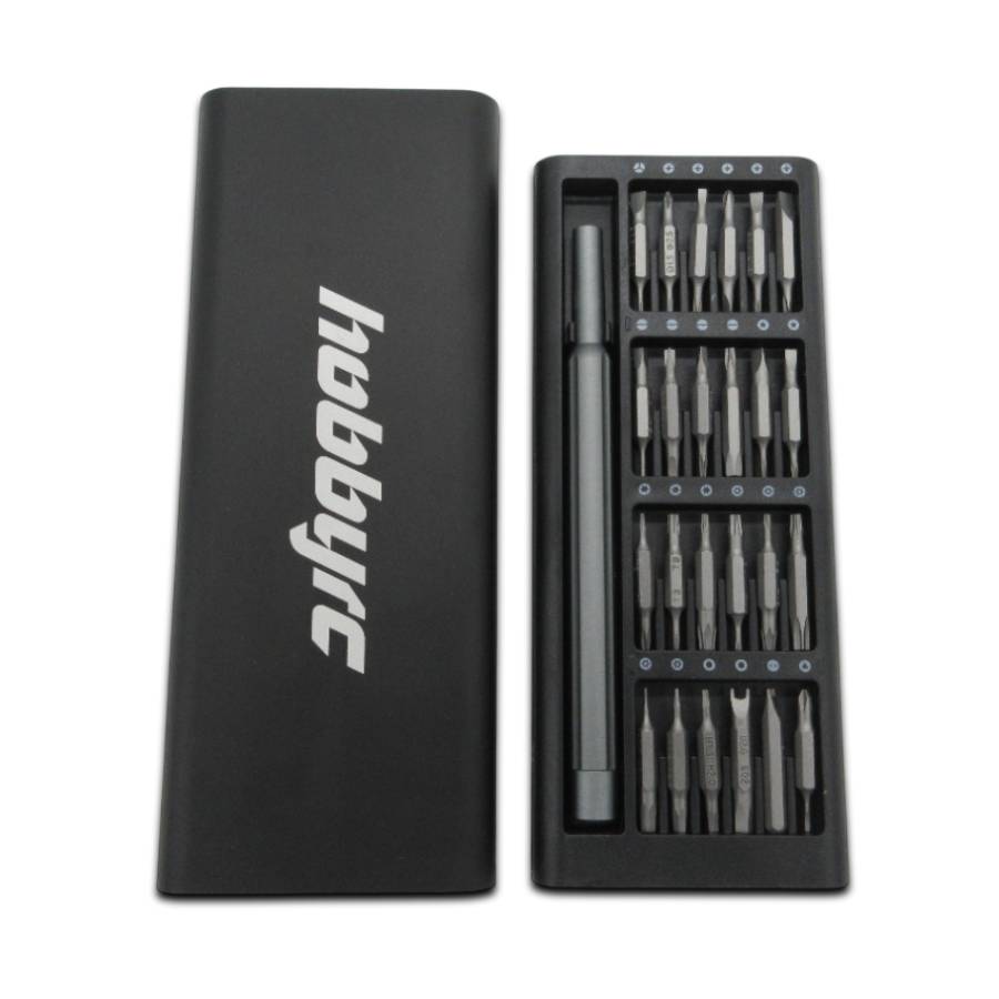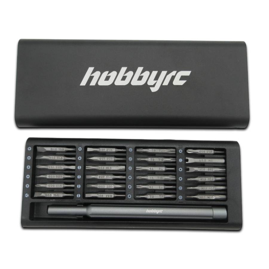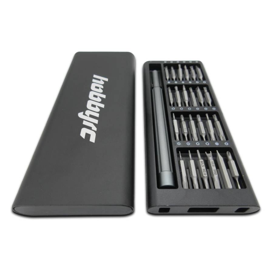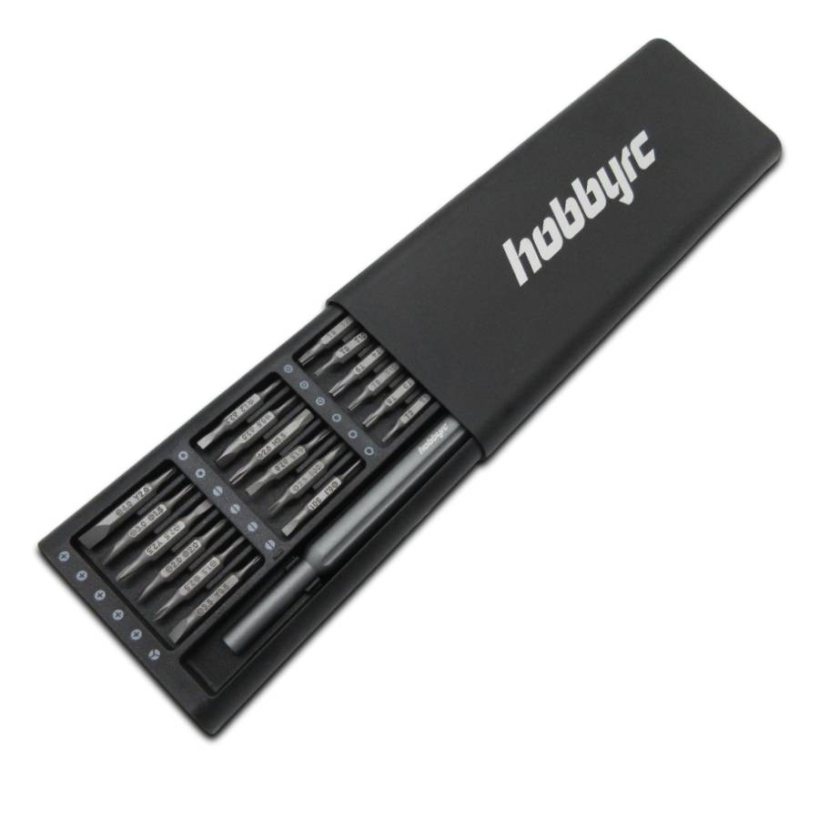 HobbyRC Mini Precision Screwdriver Set with 24 double-ended magnetic driver bits.