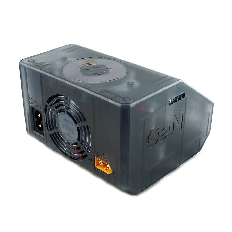 The HOTA D6 Ultra is a powerful dual-channel charger that supports 1–6S LiPo batteries and a broad range of other battery chemistries. Its integrated GaN power supply delivers up to 300W from a standard mains socket, offering fast, compact performance. For field use the unit accepts DC input via an XT60 connector from 6.5–30V. When supplied with DC above 24V the charger can deliver up to 325W per channel, or 650W combined.