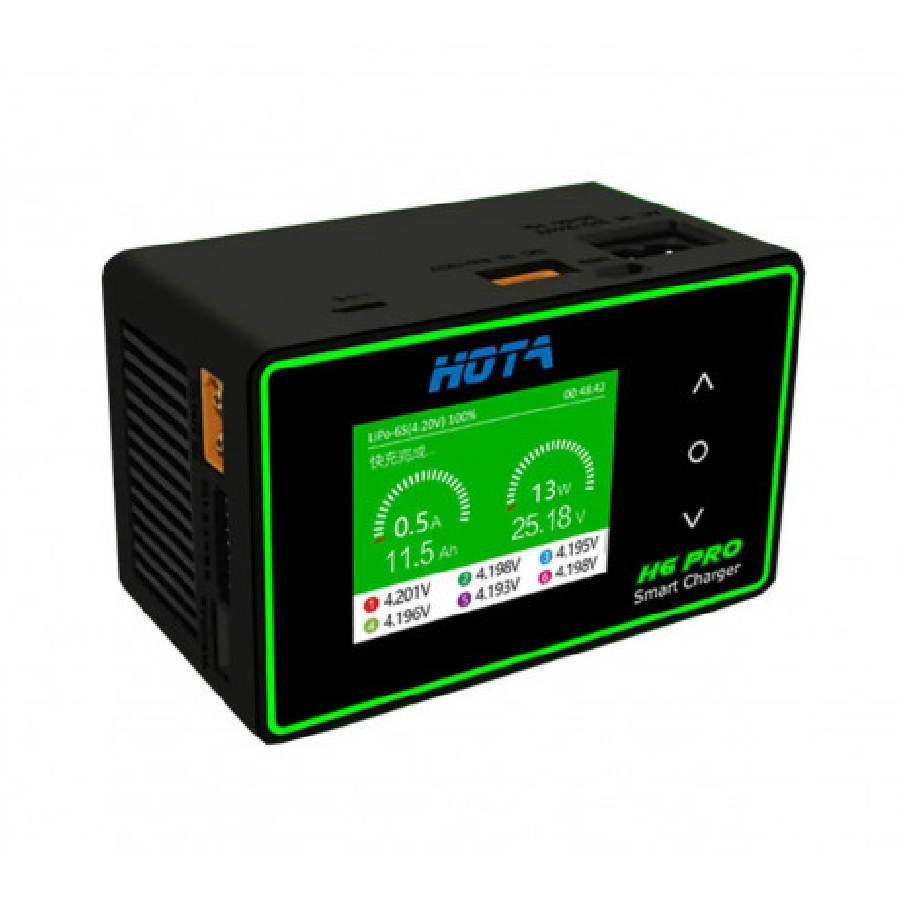 The HOTA H6 Pro is a high powered charger that can charge upto 200W when powered from AC or 700W when powered by DC. It is suitable for LiHV, LiPo, LiFe, LiLon, Lixx, NiZn, NiCd, NiMH, Pb batteries. It offers numerous safety features such as temperature protection, capacity protection, input and output reverse protection, short circuit protection etc.