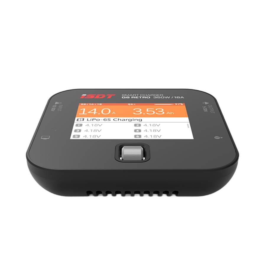 ISDT Q6 Retro is a compact battery charger/discharger powered by via DC input.