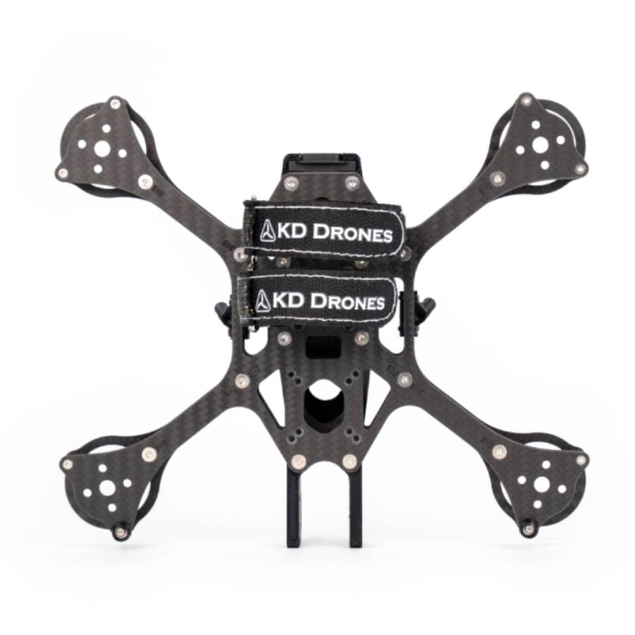 KD5 has no props in view on the O4 Pro at any angle, and no props in view on an Action 5 down to about 10 degrees. It has a GPS mount in the middle that's isolated from everything else, and antenna mounting for ideal separation. The battery is bottom-mounted with dual straps for easy hand launch/catch, and a lower moment of inertia for improved performance. It even has 30.5x30.5mm KDCM Lite mounting holes on top for flying larger payloads. It's a very tight build with only 15mm height internally, yet still has space for a full stack, VTX, GPS, diversity Rx, and capacitor. KD Drones state this frame kit is designed for advanced quad builders. For more information, check out their YouTube channel *here*.
