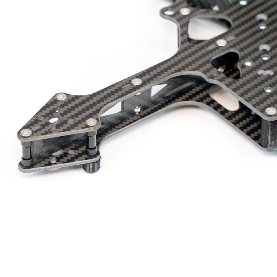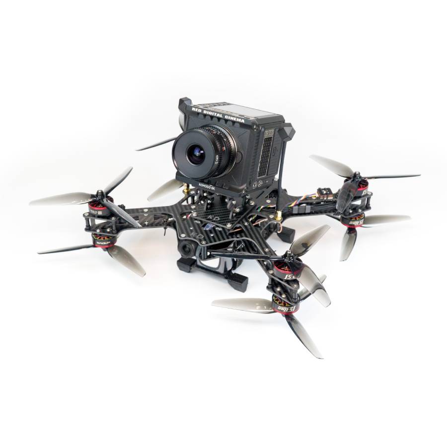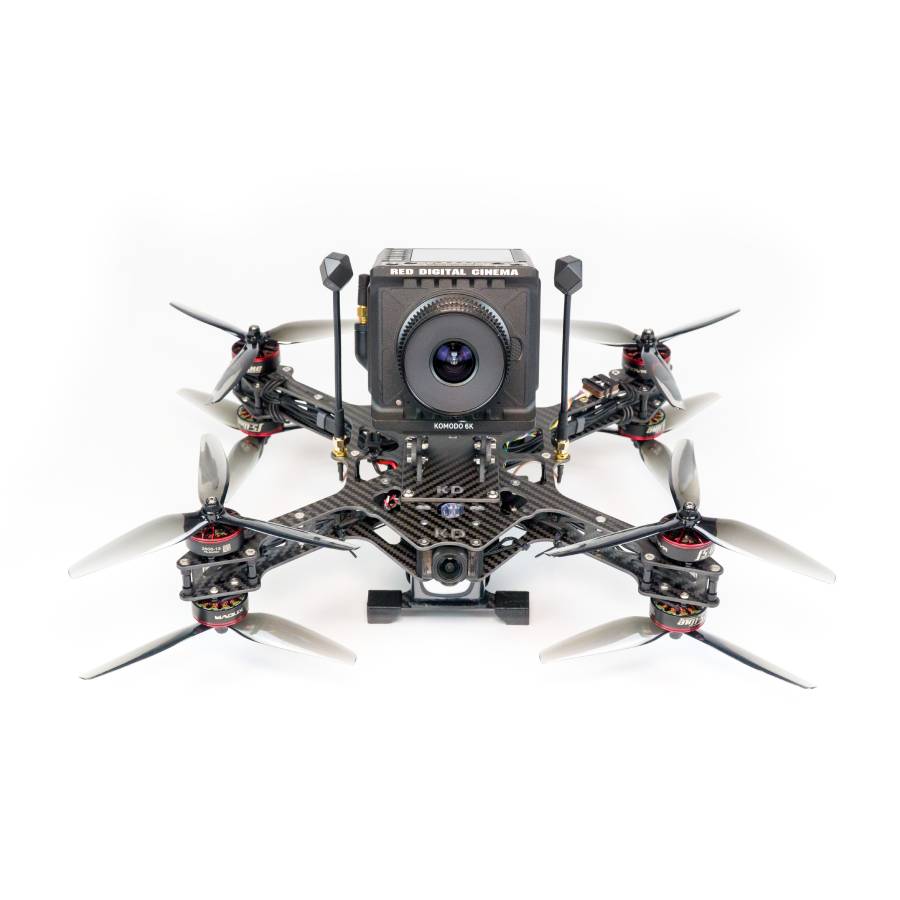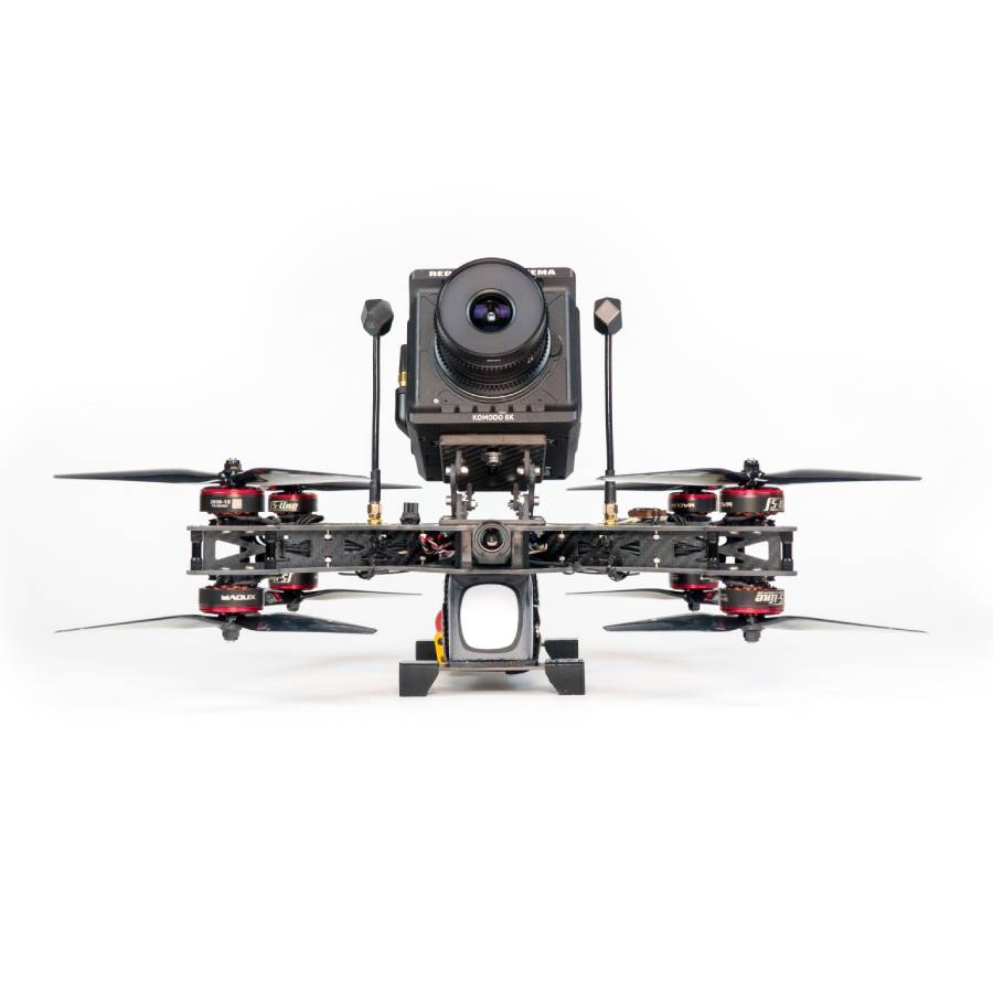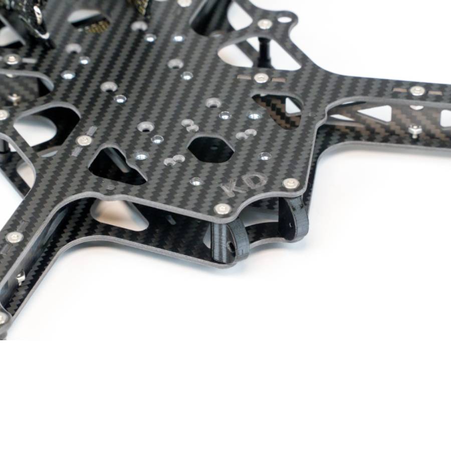 KD7 is a 7" X4/X8 cinelifter (both options from the same frame kit) designed to carry a BM 4KG2, Red Komodo, Sony FX6, Freefly Ember, etc. It has a unique I-beam design made of vertical arms clamped between two continuous plates. This creates an insanely strong and stiff structure, while packing a huge number of features into a frame of only 263g.
