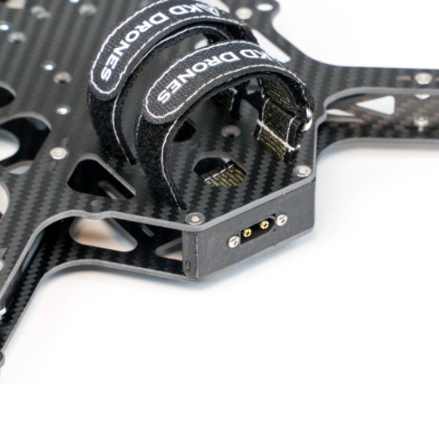 KD7 has KDCM Lite mounting holes in three positions, KDCM/DAC camera mount holes in the middle, and naked BM mounting holes on top. You can go down to zero degrees with no props in view on a 7.5mm lens on the 4KG2. The battery can be top or bottom mounted for great CG balance, lower moment of inertia and a more compact rig. For bottom mounting, you can buy a KD Battery Plate to protect the battery and act as landing gear. There is a lot of space inside, with an abundance of mounting holes, zip tie slots, and easy access to USB ports. For more information, check out their YouTube page here.
