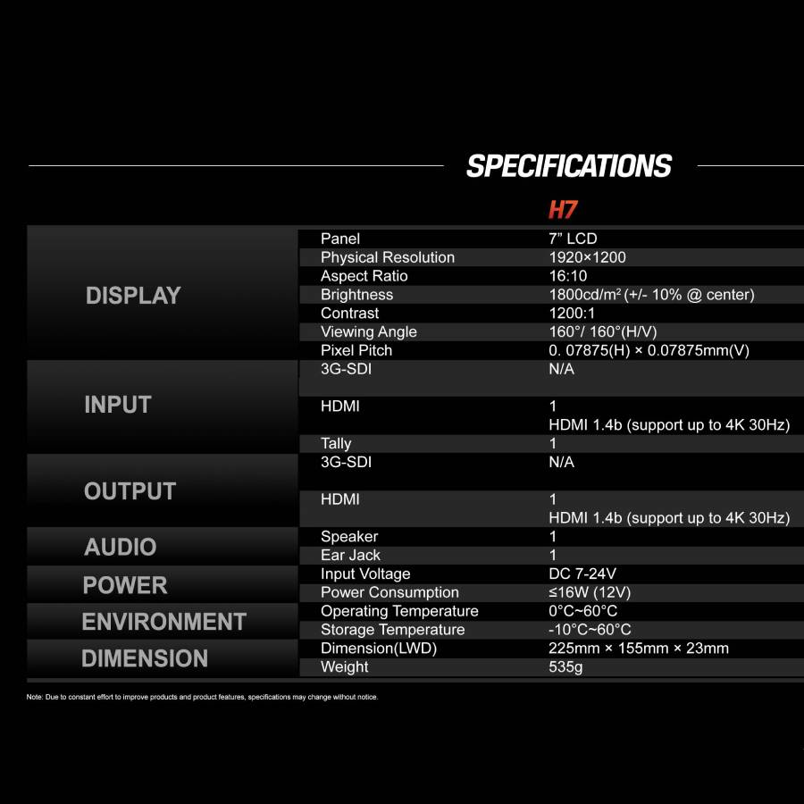 - Model: Lilliput H7s 7 inch Ultra Bright 4K Field Monitor