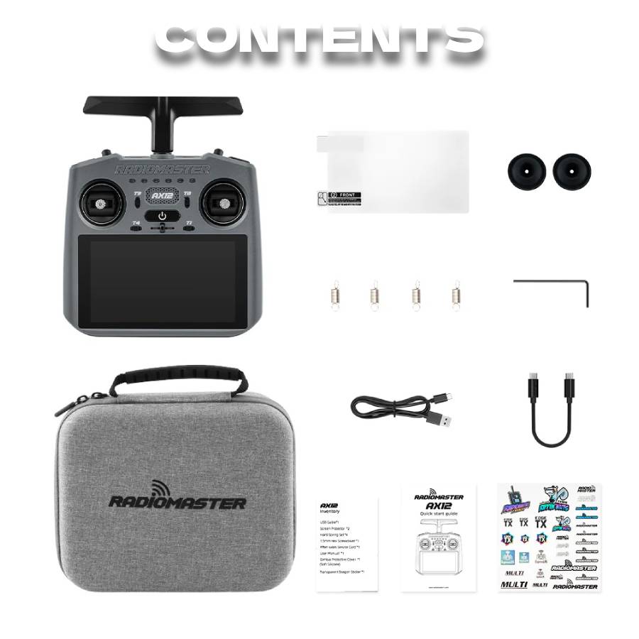 - 1x Radiomaster AX12 Transmitter (ELRS)