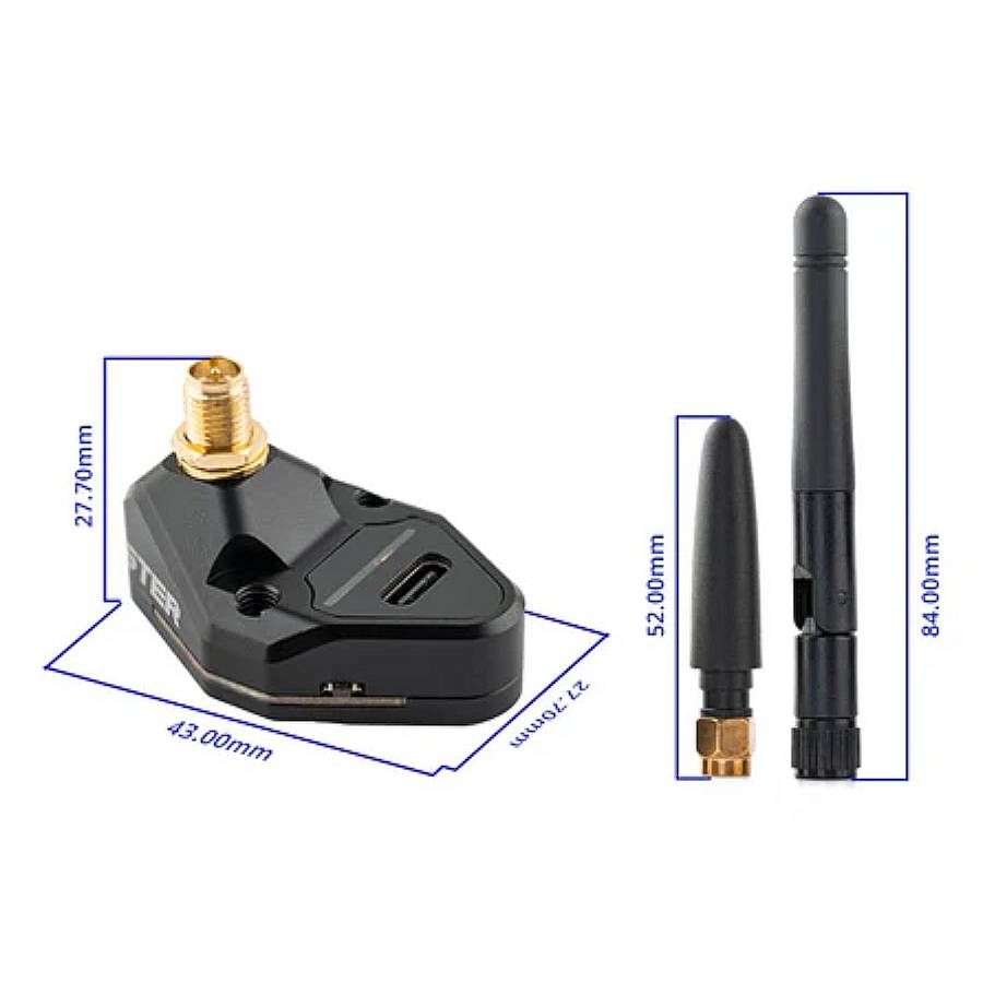 The Radiomaster GR-01 ExpressLRS 2.4GHz receiver has been developed for Cinelifter setups utilising the DJI RS2 and RS3 Pro gimbal platforms. Designed for professional use and easy installation, the GR-01 features a sturdy aluminium case and a built-in USB-C interface for easy firmware updates. Two antennas have been included to assist in setting up the receiver to best suit your custom solution. Take control of your RS gimbal like never before and elevate your cinematography game with the Radiomaster GR-01.
