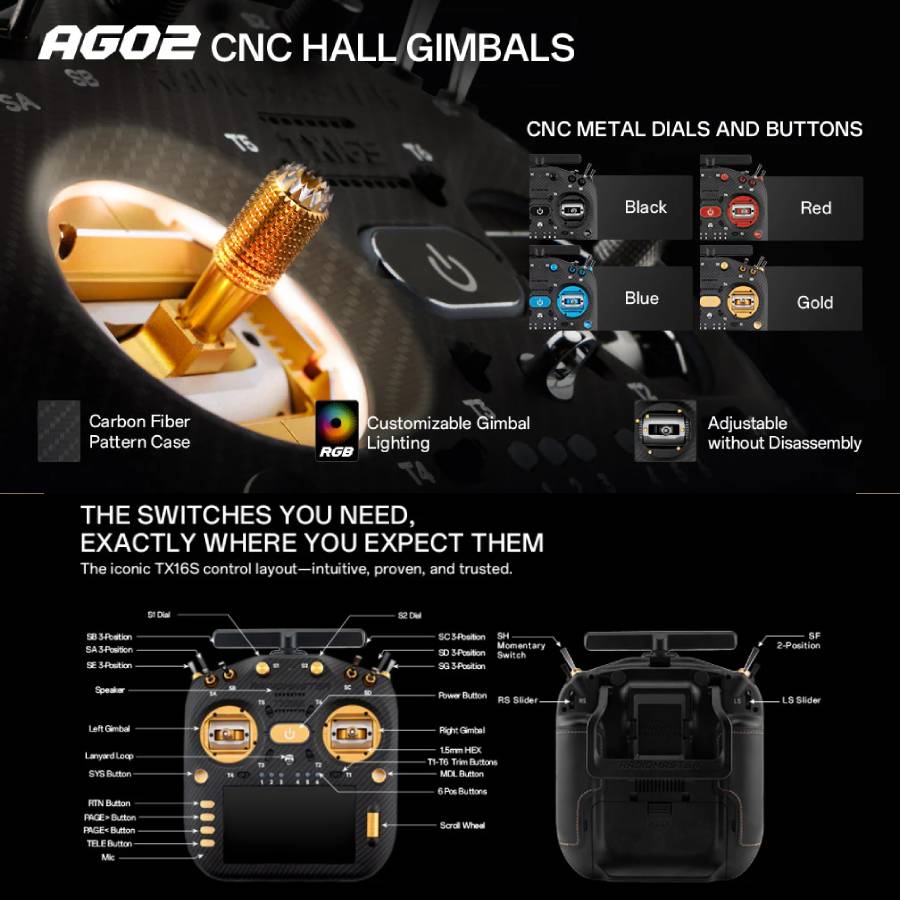 - Gimbal: AG02 CNC Hall sensor gimbals