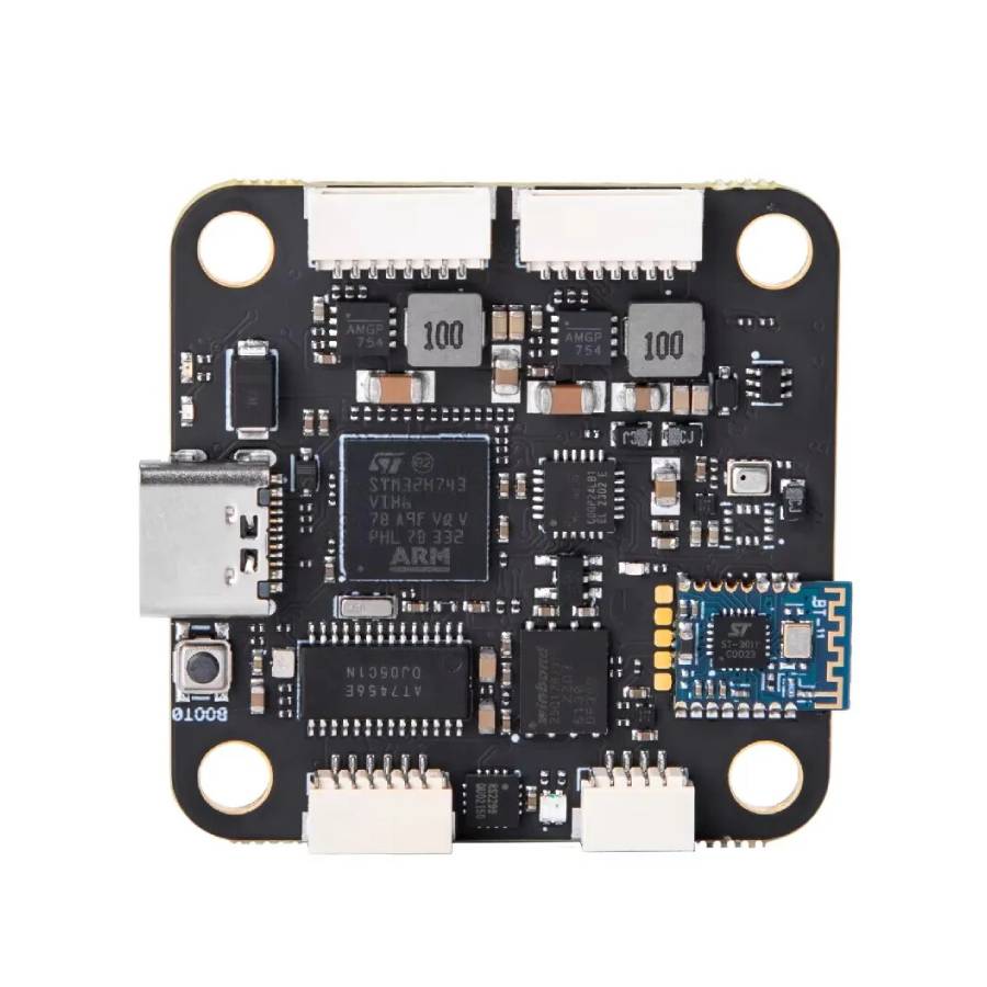 The controller supports a wide range of modern FPV systems, including both analogue and digital HD setups, with built-in OSD and multiple UARTs allowing flexible configuration of receivers, GPS modules, VTX control and other peripherals. Integrated Bluetooth connectivity also enables wireless configuration via compatible apps, simplifying setup and field adjustments.