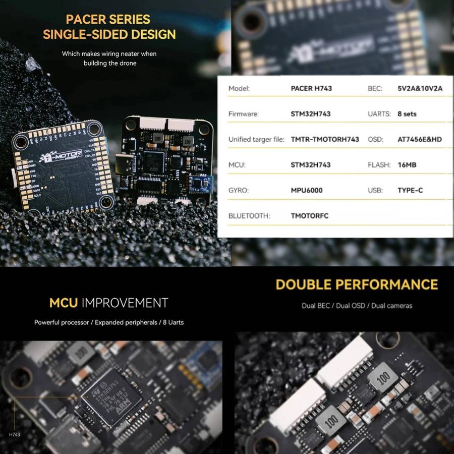 The T-Motor Pacer H743 Flight Controller is a high-performance 30x30 FC designed for demanding FPV builds where processing power, reliability and connectivity are key. Built around the STM32H743 processor, it provides the performance headroom required for modern Betaflight setups, high update rates and multiple peripherals without bottlenecks.