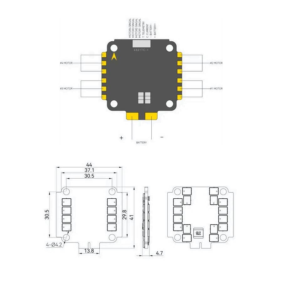 - Compatible EK format: 4-in-1 multirotor ESC module