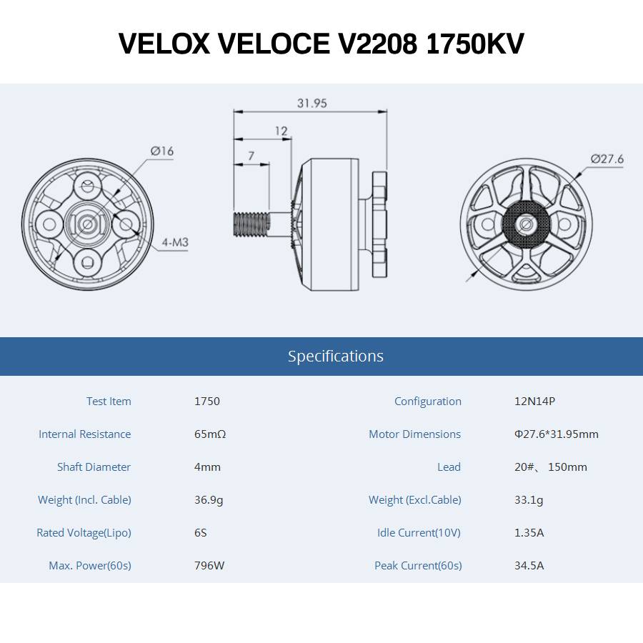 - Velox Veloce V2208 V2 1750KV (AHD03010033)