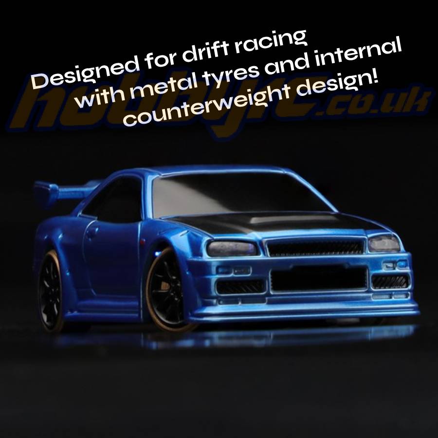 The Turbo Racing C64 is a fully proportional 1:76 scale RC sports car that delivers genuine hobby-grade control in a model small enough to fit in the palm of your hand. Its sleek, low-profile chassis and detailed body shell capture the look of the real-life high-performance car (reminiscent of a 90's Nissan Skyline). At the same time, the precision steering and throttle control give a realistic driving feel. Compact, rechargeable and ready to run, it’s the perfect blend of performance and collectability. No transmitter is included with this car; you will need to purchase one separately to use it.