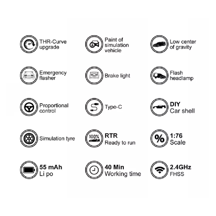 The Turbo Racing C74 is a fully proportional 1:76 scale RC sports car that delivers genuine hobby-grade control in a model small enough to fit in the palm of your hand. Its sleek, low-profile chassis and detailed body shell capture the look of the real-life high-performance car (reminiscent of a 90's Nissan Skyline). At the same time, the precision steering and throttle control give a realistic driving feel. Compact, rechargeable and ready to run, it’s the perfect blend of performance and collectability.